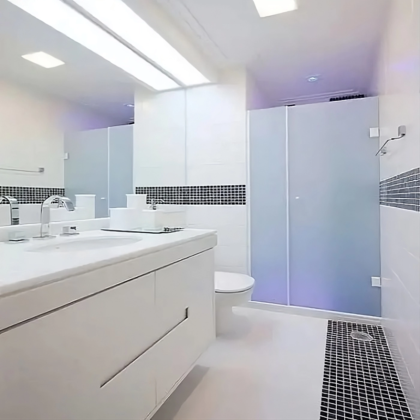 ✅ Design discreto e funcional: vidro jateado que valoriza o ambiente, facilita a limpeza e mantém a privacidade.